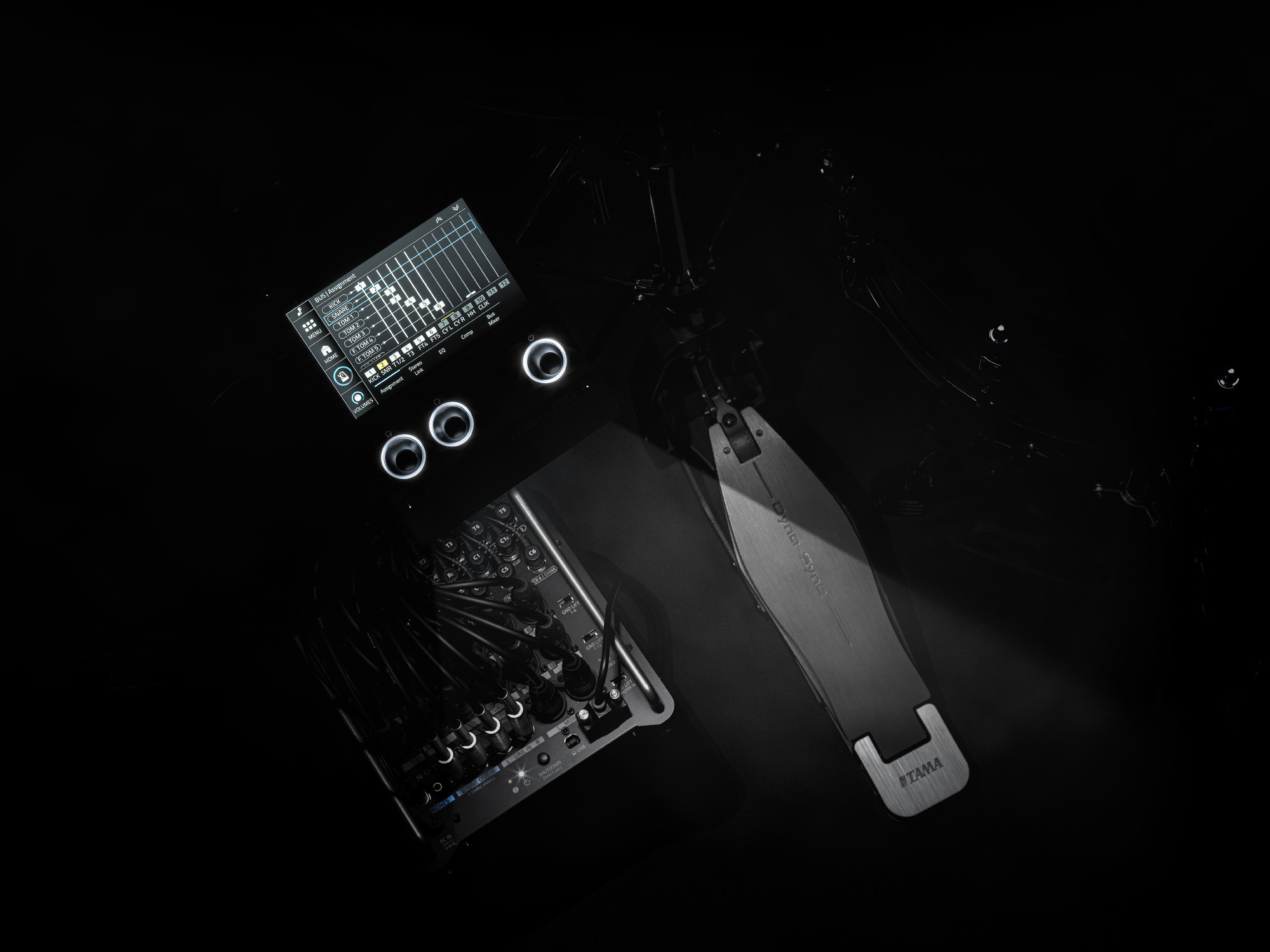El módulo está equipado con una pantalla táctil a color y ofrece 15 kits predefinidos, 20 kits de usuario y 167 sonidos multicapa de alta definición. También integra 3 bandas de ecualización, un compresor y un Master EQ para un ajuste detallado del sonido.