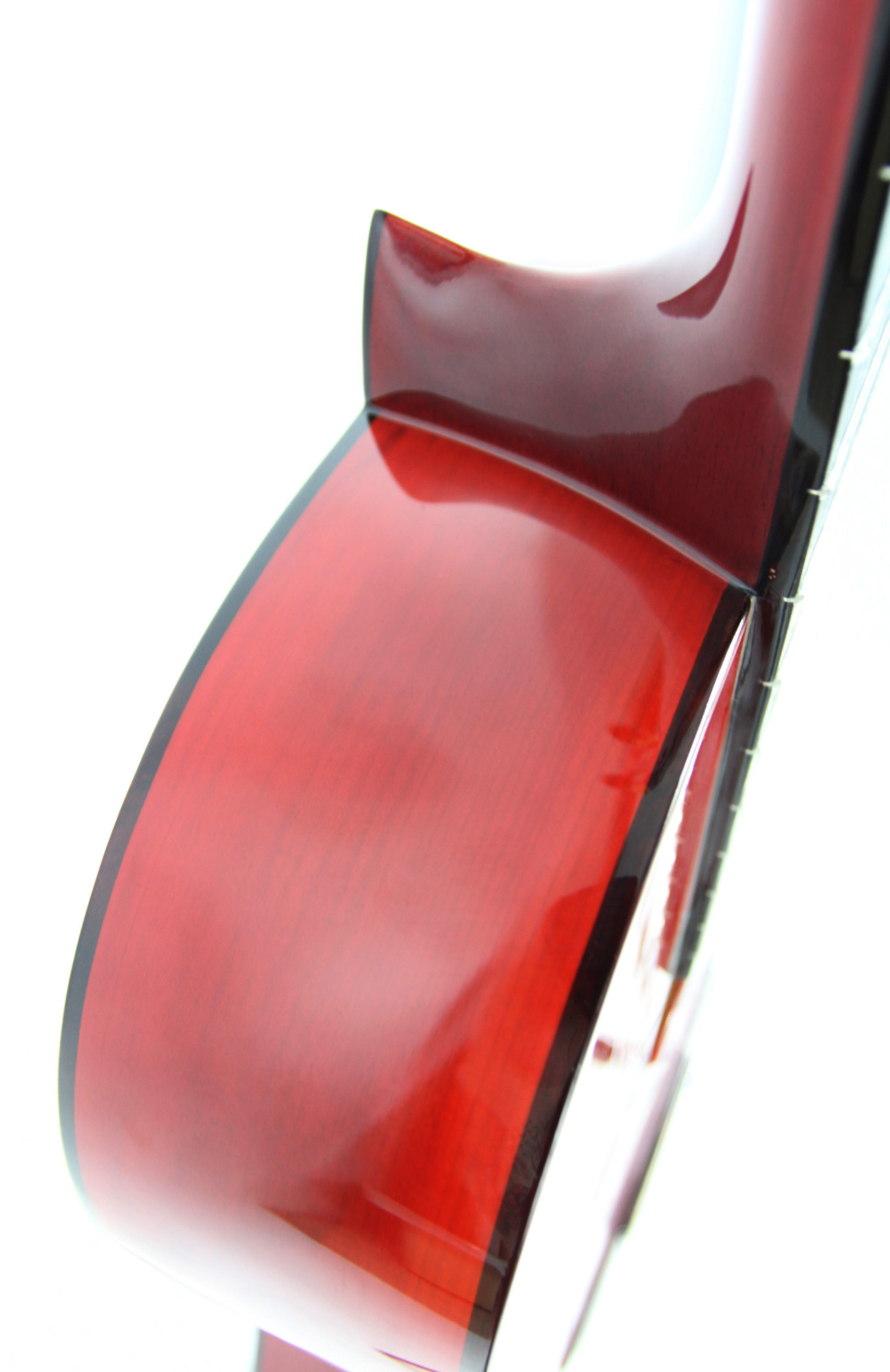 Este modelo GIPSYKINGS (by André Reyes) está diseñado para el estilo flamenco y combina una tapa de abeto macizo con un fondo y aros de ciprés macizo. Su acabado rojo brillante le aporta una presencia visual distintiva. Se entrega con una soft case.