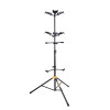 Este soporte de exposición está diseñado para alojar hasta seis guitarras con una sujeción fiable y práctica. Integra el nuevo sistema AGS, compatible con anchos de mástil de 40 a 52 mm, incluidas las guitarras clásicas, así como el sistema NINA, que permite adaptarse a mástiles más finos como los de banjos o mandolinas.