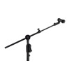 Soporte de jirafa con sistema Hideaway que permite transformar rápidamente el pie recto en pie de jirafa, palanca Power Lock para una fijación robusta de la jirafa, sistema de ajuste de altura EZ Grip, brazo telescópico, pinza para micrófono EZ Mic Clip incluida.