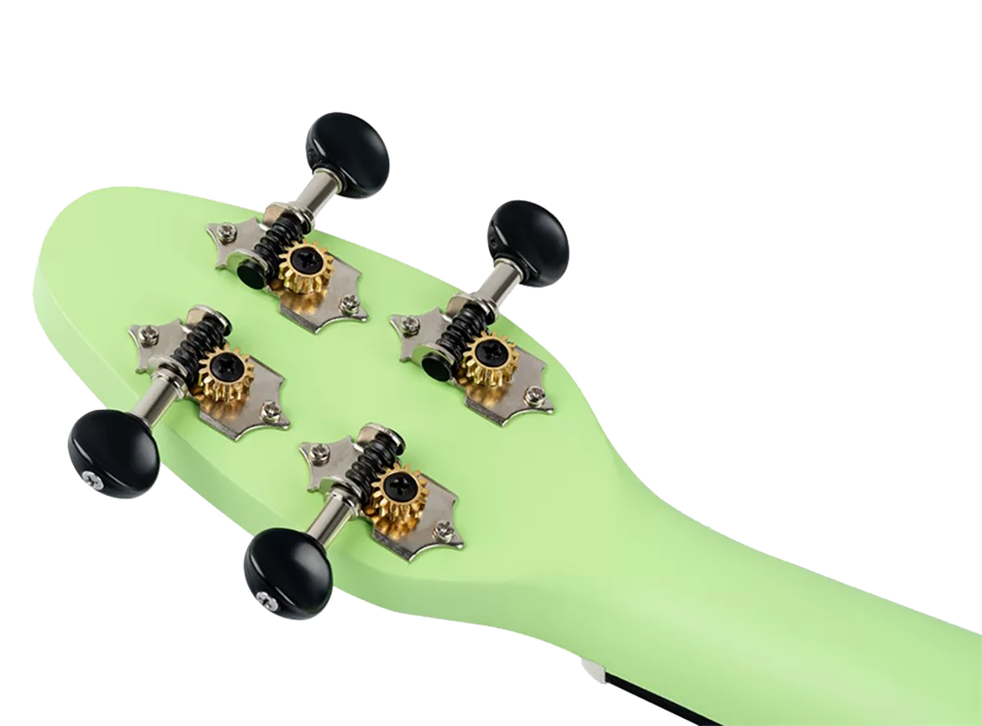 Este modelo cuenta con diapasón y puente de ABS, así como con clavijeros abiertos con botones negros. Su acabado satinado tomatillo le da un estilo cuidado y original. El pack también incluye accesorios útiles para empezar de inmediato: un afinador de pinza, una correa para la boca, 5 púas medianas y una funda con cordón.