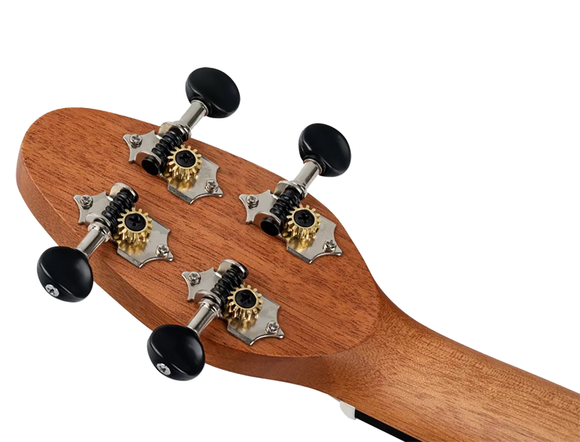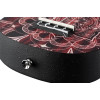 Se distingue por su tapa de agathis con diseño caleidoscópico, su cuerpo de ABS ligeramente curvado, su mástil de okumé y sus clavijas abiertas, para un conjunto práctico y bien pensado.