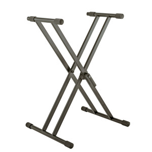 Soporte de teclado « Rick 20 » doble X, de acero, altura ajustable de 594 mm a 946 mm, carga máxima de 50 kg, profundidad de 250 mm, peso de 5,4 kg, color negro.