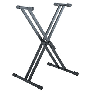 Este soporte doble en X de aluminio para teclado está diseñado para ofrecer una solución estable y práctica para la instalación de su instrumento. Su estructura permite un ajuste de altura de 327 mm a 789 mm, para adaptarse a diferentes usos y configuraciones. Con una profundidad de 350 mm y una carga máxima de 50 kg, responde a las necesidades de sujeción para un uso fiable en el día a día. Su peso de 2,45 kg también facilita su transporte e instalación.
