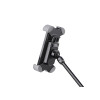 Soporte universal para smartphone K&M 19753, diseñado para una fijación sencilla y fiable con rosca de 3/8" y 5/8". Su estructura de acero y plástico permite un uso versátil, mientras que su sistema de ajuste se adapta fácilmente, sin herramientas, a numerosos modelos de smartphones. El soporte gira libremente 360° para ajustar la orientación según sus necesidades.