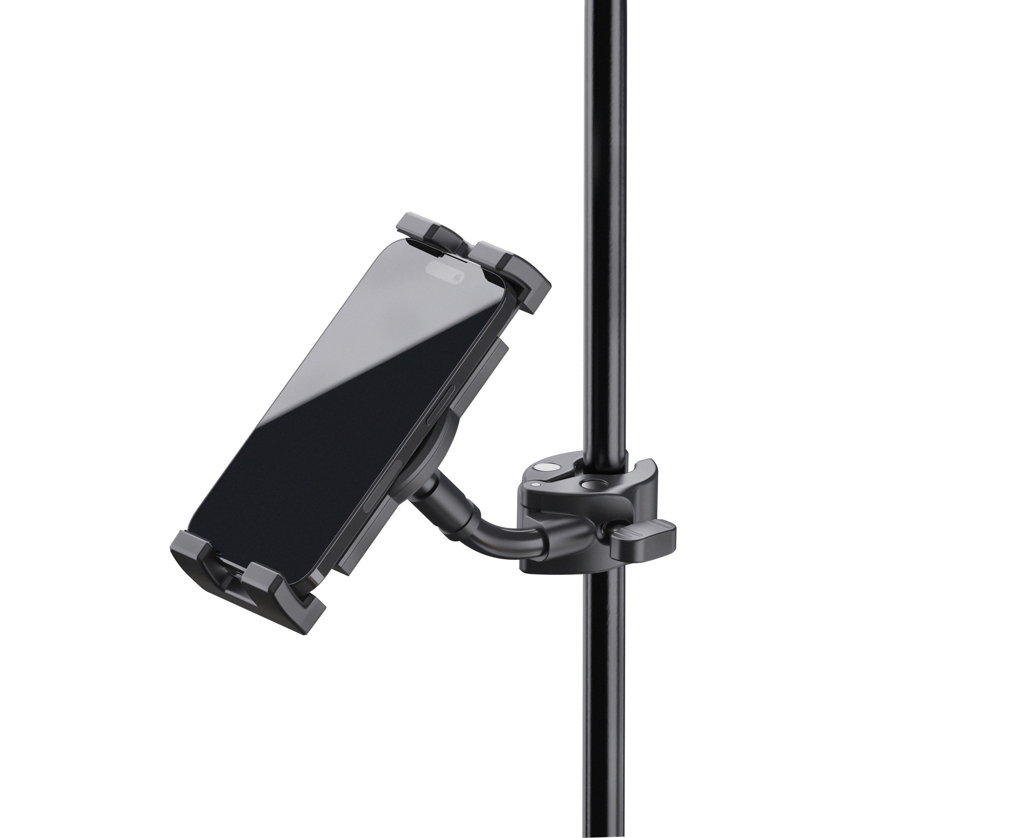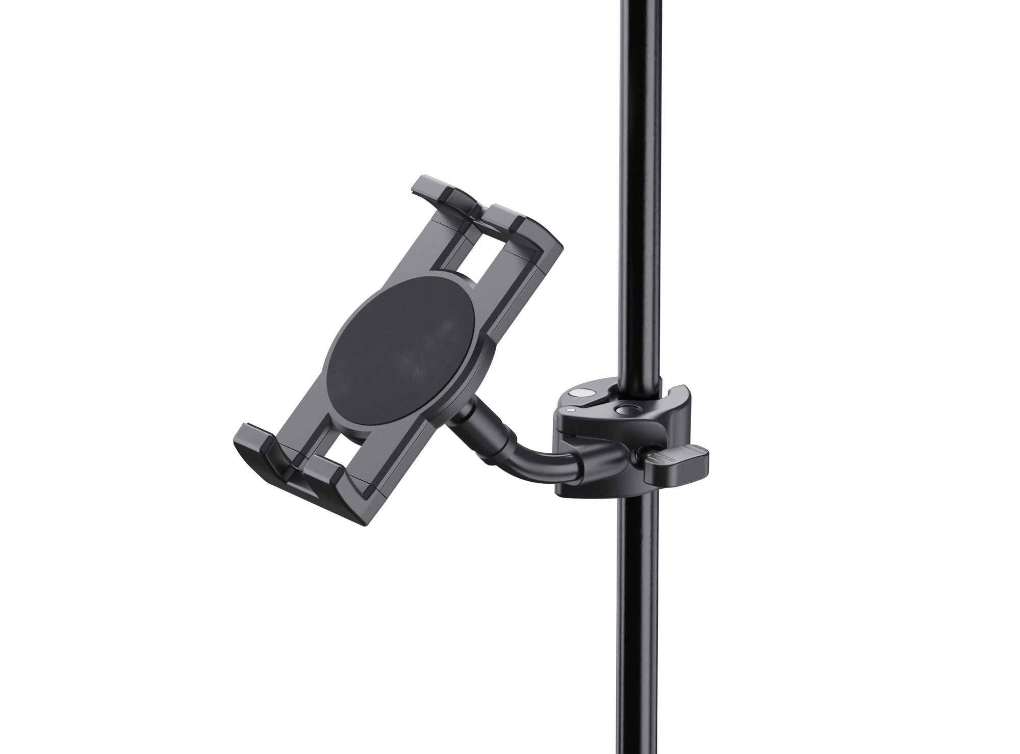 Soporte universal para smartphone y tableta K&M 19764, fijación por abrazadera.