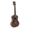 Ofrece un diseño sencillo y práctico con tapa, fondo y aros de tilo, 19 trastes, diapasón de álamo y clavijas abiertas metálicas, así como un afinador de pinza y una funda acolchada.