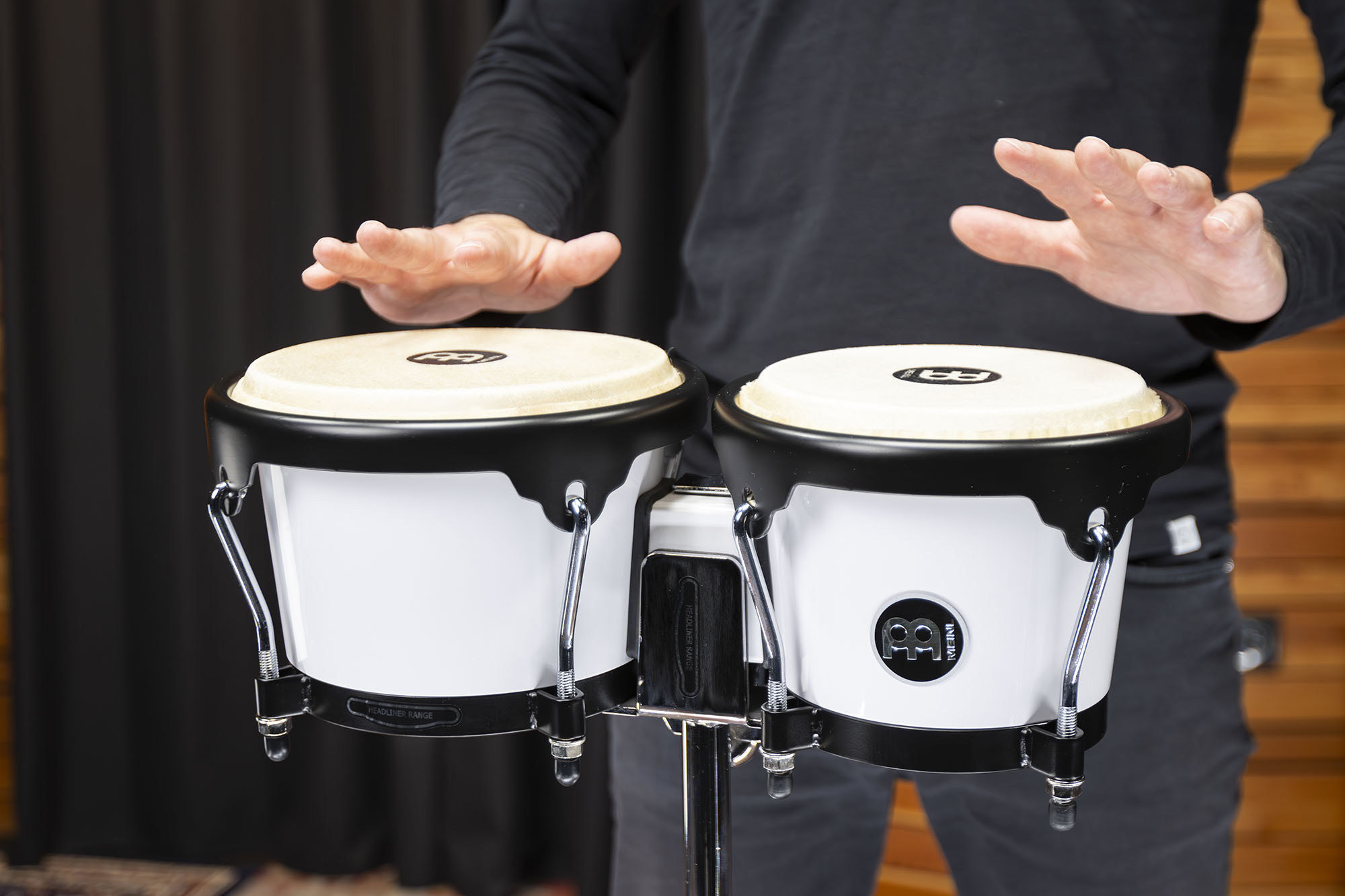 Bongós Meinl serie Journey con parches de búfalo y cascos de ABS blancos, en formatos de 6,5" y 7,5".