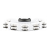 Este modelo se distingue por su forma de media luna y su fabricación en ABS, un material apreciado por su robustez y facilidad de uso. Su acabado blanco le aporta un aspecto sobrio y versátil, adecuado para distintos contextos musicales.