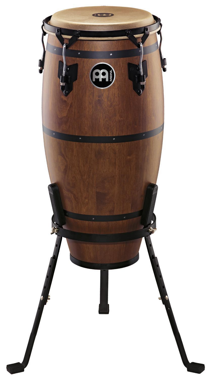 Este modelo de 11" con estilo Cubano Retro está diseñado con un casco de caucho de 71 cm para ofrecer una construcción robusta y un acabado auténtico. Está equipado con un parche de búfalo seleccionado, tensores de 8 mm, aros tradicionales TTR de 5 mm y herrajes con recubrimiento negro en polvo. La entrega también incluye una llave de afinación y un soporte de cesta negro para una instalación práctica.