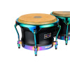 Este par de bongos combina fustes de Roble Siam (Hevea brasiliensis Muell.-Argentine) con un sistema de suspensión Meinl Free Ride para una buena estabilidad de interpretación. Las pieles true skin vaca, los ganchos de 8 mm y los aros redondeados SSR de 3 mm contribuyen a una construcción cuidada, mientras que la herrajería Spectrum Series y el acabado Spectrum Noir aportan una estética elegante y homogénea.