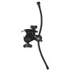 Abrazadera de acero fundido con acabado negro en polvo, diseñada para ofrecer una fijación estable y un ajuste preciso. Su cuello de cisne y su rotación de 360° permiten ajustar fácilmente la posición según las necesidades de uso. Con su rosca de 3/8", se integra con facilidad en las configuraciones compatibles.