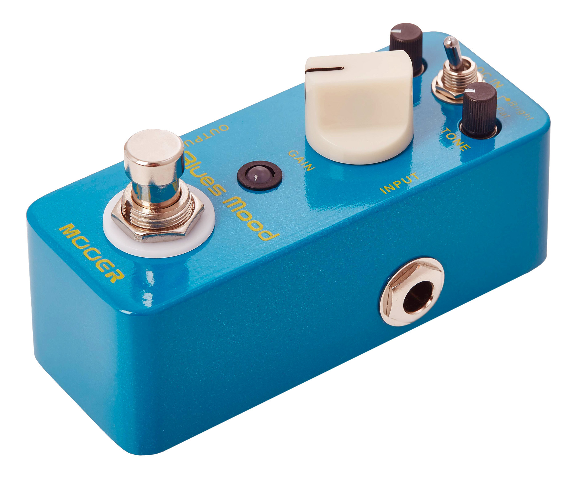 Pedal BLUES MOOD, overdrive blues de amplia curva de respuesta, también adecuado para bajo, con carcasa metálica, true bypass y acabado azul.