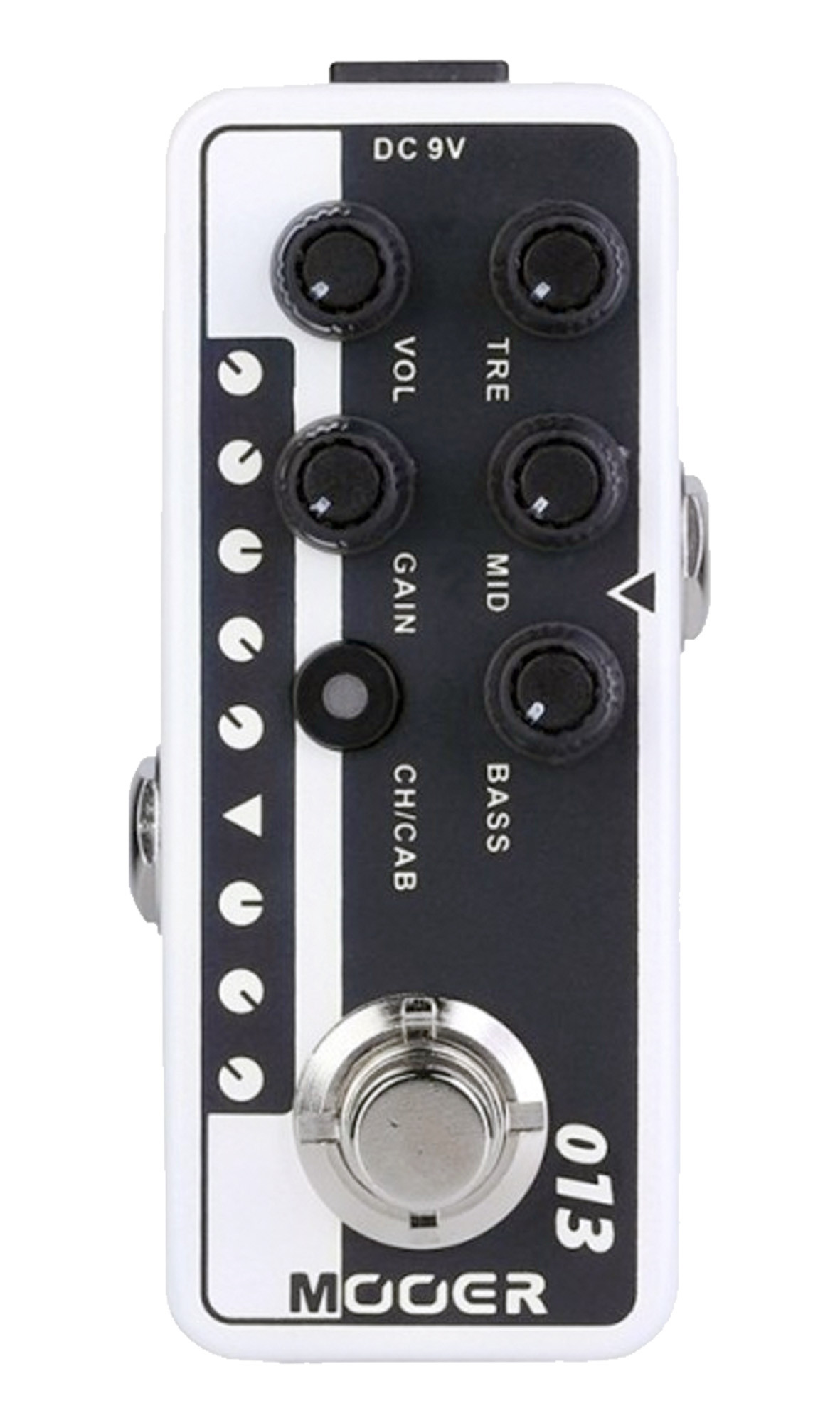 Este pedal de previo digital ofrece un sonido de tipo American Classic combo de 30 W con dos canales independientes. Cada canal dispone de un ecualizador de 3 bandas, que permite ajustar con precisión el sonido según sus necesidades. Su diseño en negro y blanco y su carcasa metálica lo convierten en un modelo compacto y robusto, apto para un uso regular.