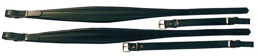 Correas de cuero negro diseñadas para 120 bajos, con acolchado para una mayor comodidad de uso.