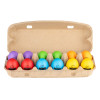 • Contenido: 2 huevos shaker morados, 2 verdes, 2 naranjas, 2 rojos, 2 azules y 2 amarillos