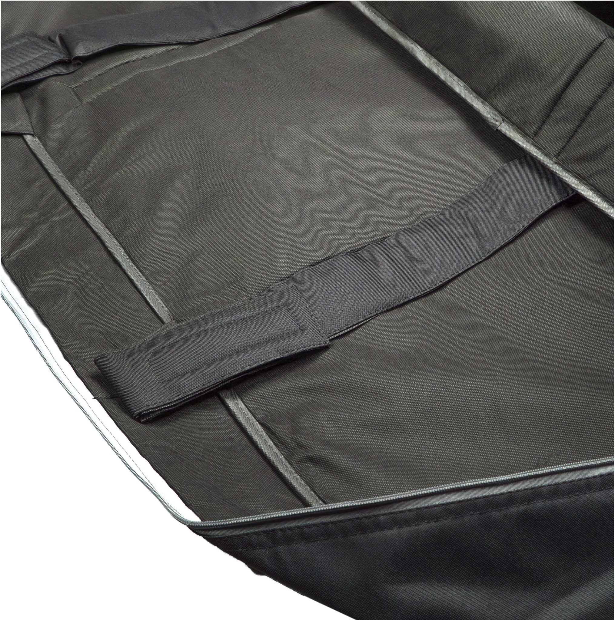 Se distingue por su diseño funcional, con correas internas de seguridad y un espacio de almacenamiento exterior, lo que lo convierte en una solución práctica para el transporte y el almacenamiento.