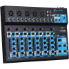 Ofrece un conjunto completo de funciones útiles, con USB, Bluetooth, efectos integrados, control preciso por canal, salida de grabación RCA y fuente de alimentación incluida, lo que lo convierte en una solución versátil y práctica.