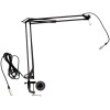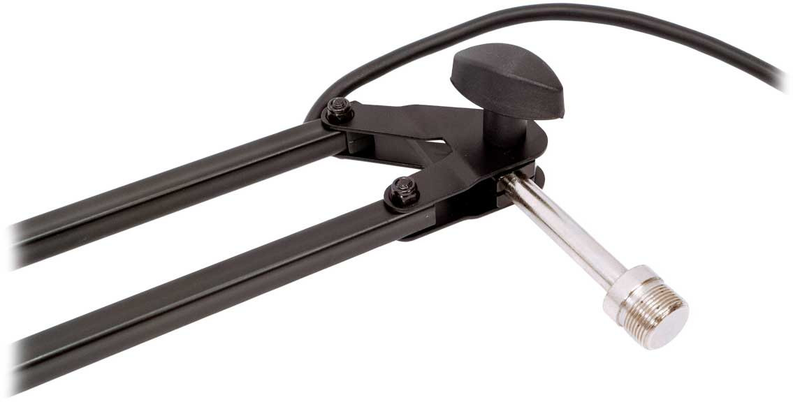 • Soporte de micrófono con brazo extensible (tipo pantógrafo) con base fija para escritorio y soporte tipo abrazadera.