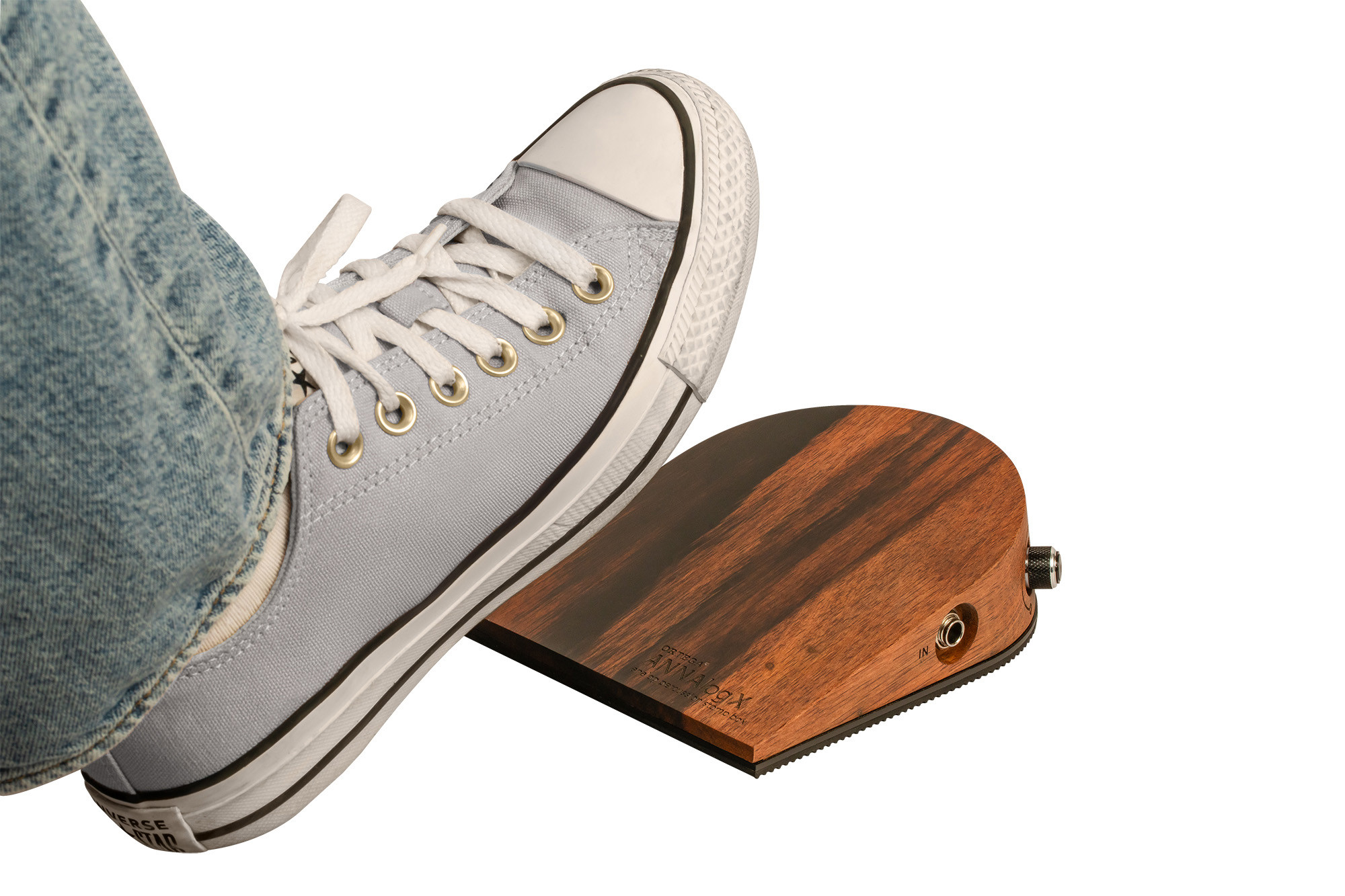 Pedal ANNAlogX-SE con caja de caoba, piezo analógico, entrada y salida jack, control de volumen, sin necesidad de alimentación.