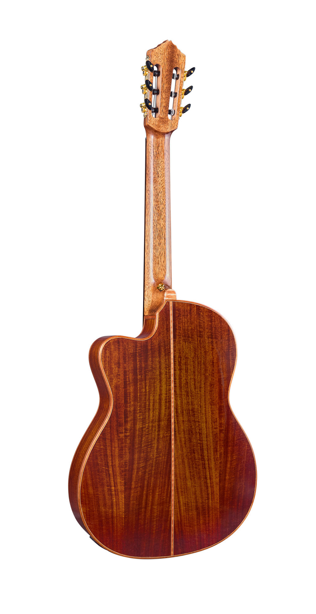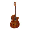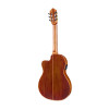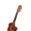Este modelo Thinline con cutaway combina una tapa de abeto macizo con chapa de acacia flameada, así como fondo y aros de acacia flameada para un acabado brillante y cuidado. Está equipado con un sistema Ortega MagusPro/G recargable, un mástil de okoumé con cejuela de 50 mm, un diapasón y un puente de palisandro, así como un puente de 12 orificios. La comodidad de ejecución se ve reforzada por un armrest, una boca lateral en el aro y un alma de doble acción. Las clavijas de latón/negro satinado clase A, las cuerdas Ortega NYP44H y la funda deluxe acolchada completan el conjunto.
