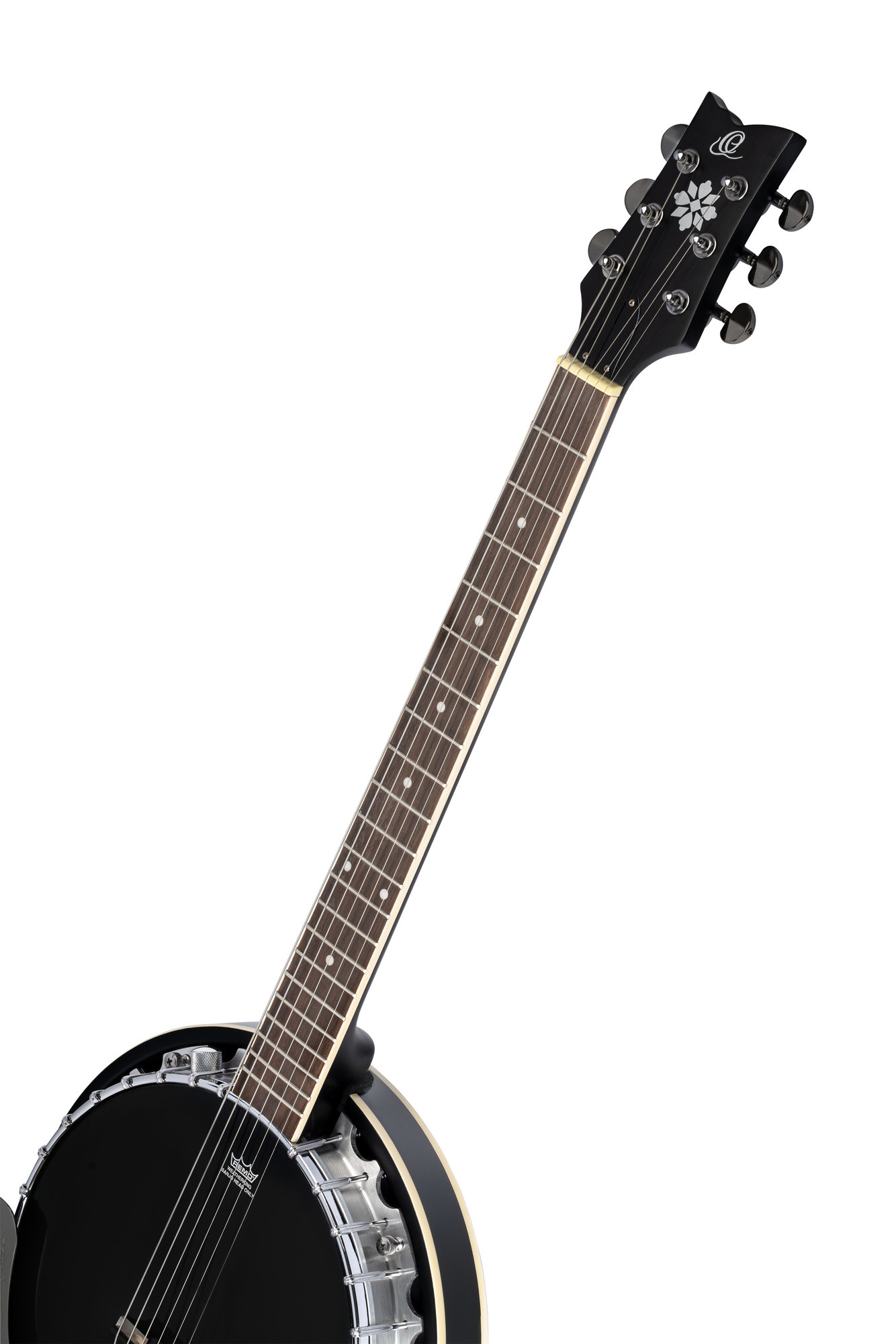 El modelo OBJE3506-SBK es un instrumento electroacústico de 6 cuerdas diseñado para ofrecer una gran presencia sonora y un manejo cuidado. Combina un aro de aluminio, un mástil de caoba, un resonador de caoba y un diapasón de ovangkol para una construcción equilibrada y duradera. Su acabado negro satinado le da un estilo sobrio y elegante, mientras que su configuración completa incluye una piel Remo negra, clavijas de baño de aceite, herrajes cromados y cuerdas D'Addario.