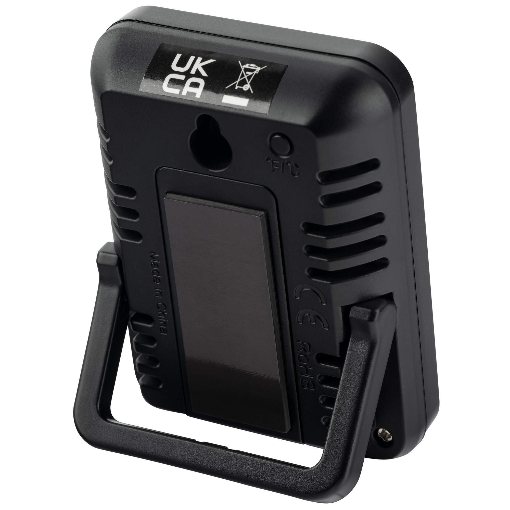 Este dispositivo permite controlar fácilmente la temperatura así como la humedad relativa del aire. Indica si el nivel de humedad se sitúa en una zona considerada correcta, entre el 45 % y el 55 %. Su acabado negro lo convierte en un accesorio discreto y fácil de integrar en distintos entornos.
