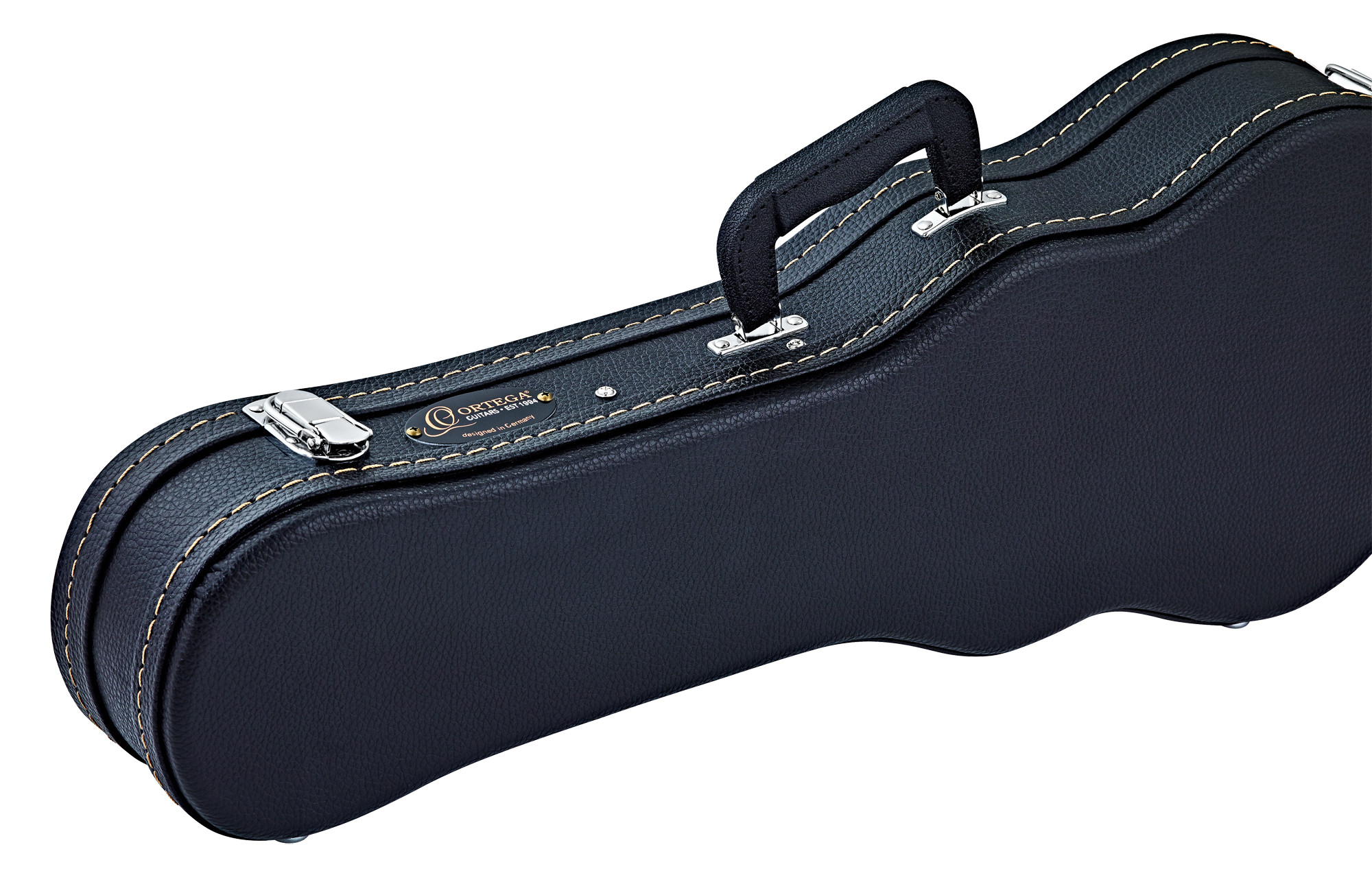 Diseñado para ofrecer una protección adecuada a su instrumento, este estuche de madera para ukelele soprano destaca por su elegante acabado negro, sus cuidadosas costuras y su logotipo visible. Constituye una solución práctica de almacenamiento y transporte para mantener su instrumento protegido.