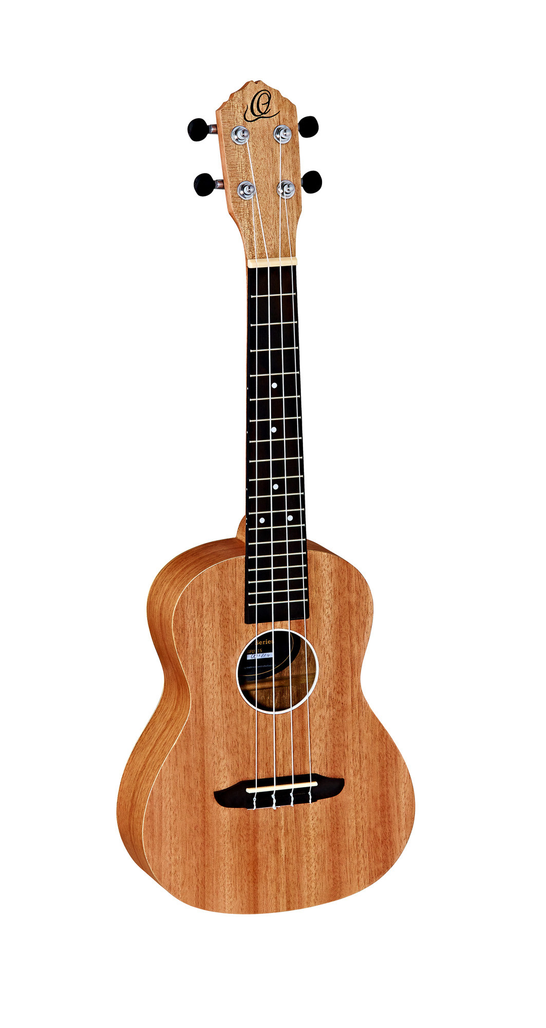 Este modelo Concert RFU11S está diseñado con una tapa de sapele, un fondo y aros de sapele, así como un mástil de caoba. Está equipado con un diapasón y un puente de nogal, clavijas cromadas de baño de aceite y cuerdas Ortega. Su acabado natural satinado realza el conjunto, y se entrega con una funda de lujo.