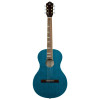 Esta guitarra de formato Parlor destaca por su cuidada concepción y su aspecto azul brillante. Combina una tapa de abeto con fondo y aros de caoba, para un instrumento entregado con una funda a juego. Su cejuela de 52 mm, su mástil de nato, su diapasón y su puente de nogal, así como sus clavijeros cromados con botones blancos, completan un conjunto armonioso y funcional.