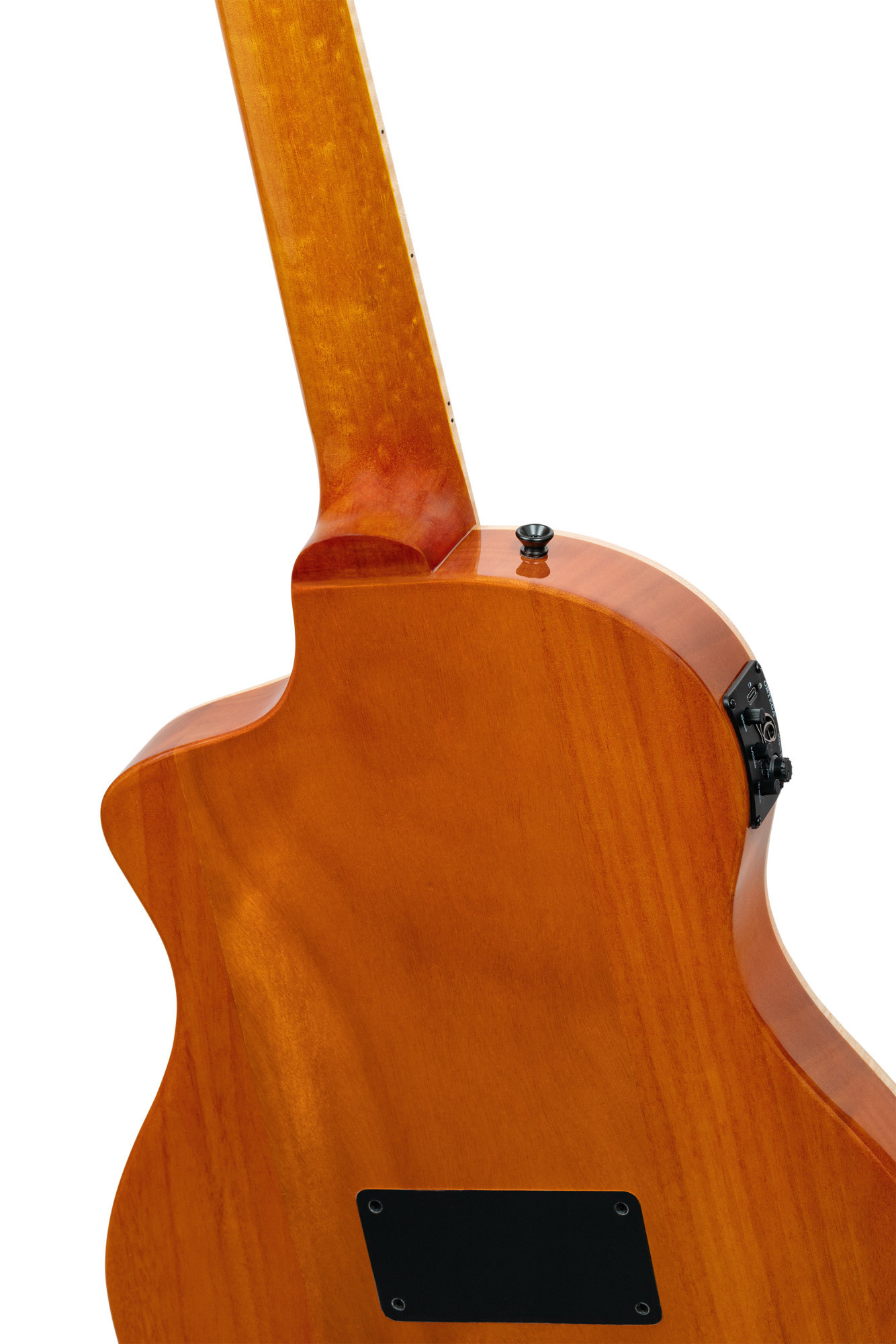 Ofrece una tapa de ziricote macizo, fondo y aros de okoumé, mástil de okoumé, diapasón y puente de laurel, así como un sistema Ortega Magus X recargable por USB.