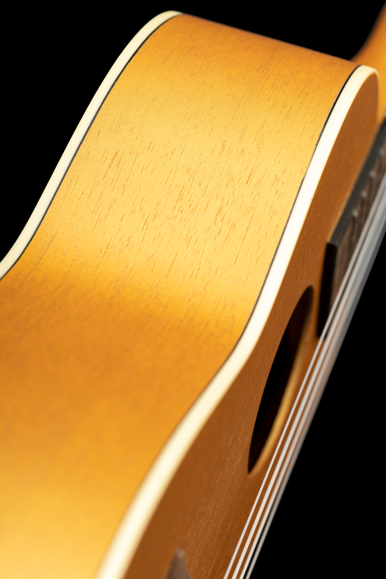 Este modelo en formato Concert combina una tapa de okoume, un fondo y unos aros de okoume, así como un mástil de caoba. Su acabado en oro satinado le aporta un aspecto cuidado, conservando al mismo tiempo un diseño sencillo y coherente.