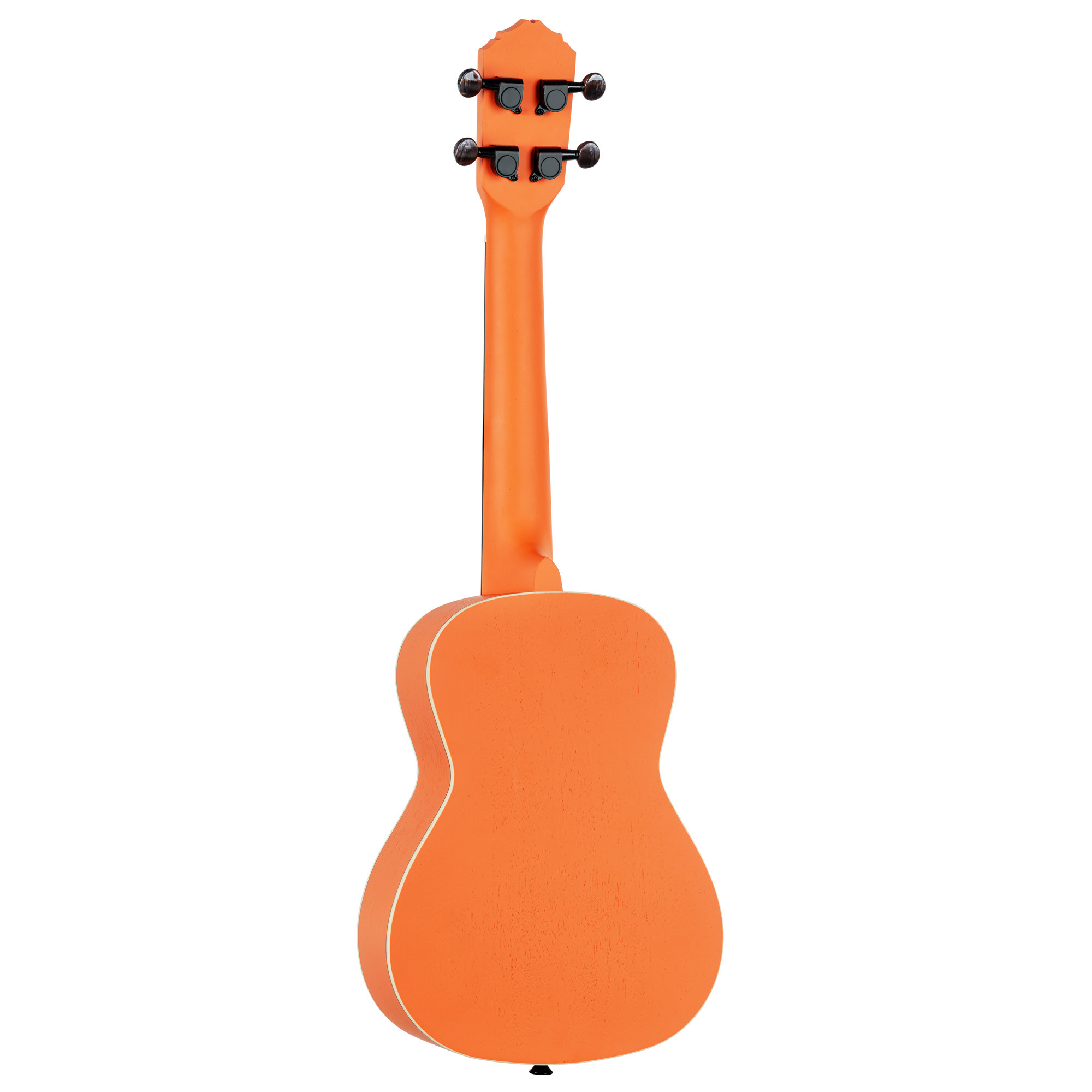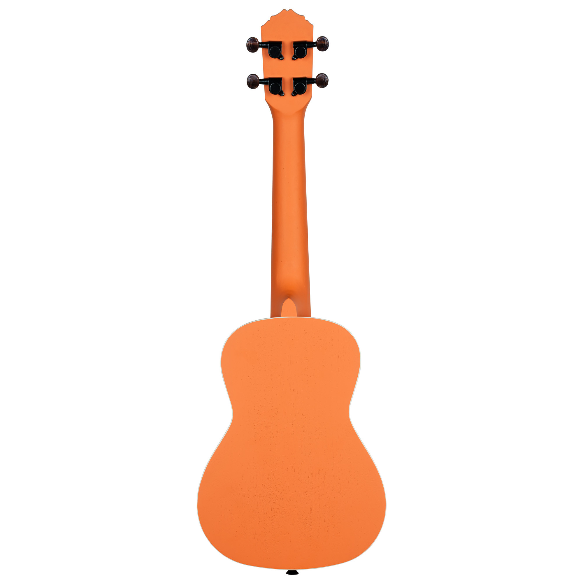 Con una cejuela de 36 mm y una escala de 380 mm, este modelo concierto ofrece un formato adecuado para una interpretación cómoda. El binding de ABS blanco aporta un acabado limpio, y el conjunto de materiales pone en valor un instrumento con una identidad visual marcada, pensado para quienes buscan un ukelele con carácter definido.