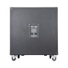 Funciona con una impedancia de 8 Ohms y se entrega con ruedas para facilitar su desplazamiento. Sus dimensiones son de 58 x 60 x 45 cm y su peso es de 25,9 kg.