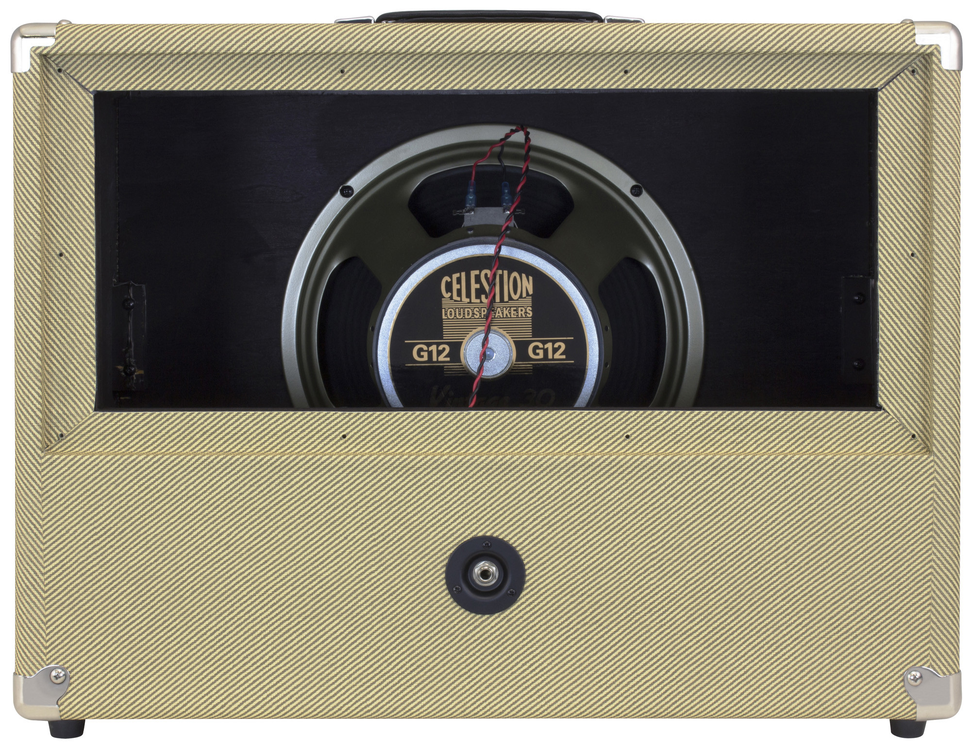 Recinto para guitarra 60 W, altavoz 1x 12" Celestion Vintage 30, parte trasera convertible en configuración abierta/cerrada, acabado Tweed