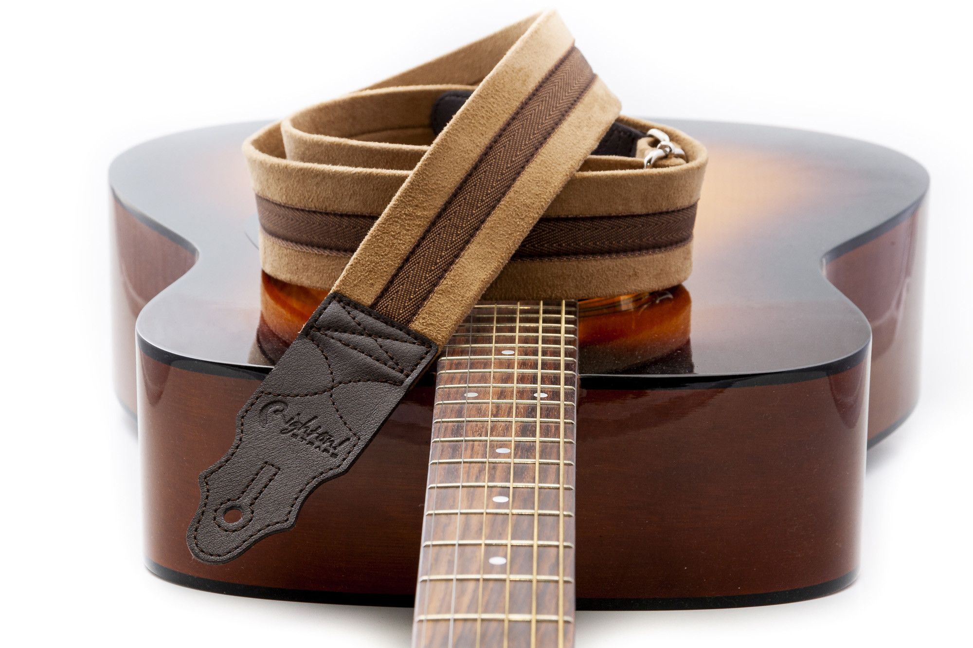 Su interés reside en su equilibrio entre sobriedad, ajuste de longitud, ancho de 5 cm y acabado textil beige, con detalles de diseño como los extremos de cuero y el forro de microfibra.