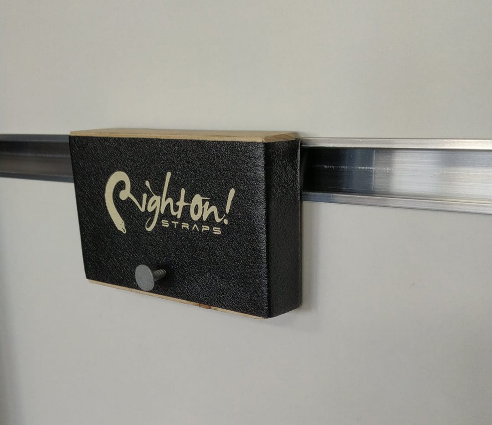 Este expositor mural está diseñado para alojar una correa y ofrecer una presentación sencilla, clara y cuidada. Se trata de un modelo Mini Slatwall de la marca RightOn! Straps, pensado para una presentación mural práctica y compacta.