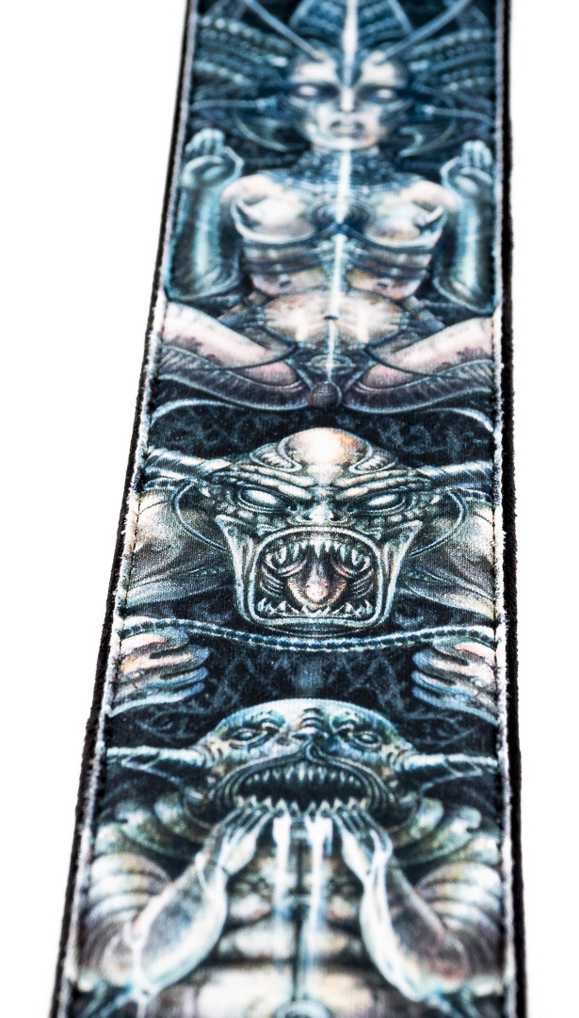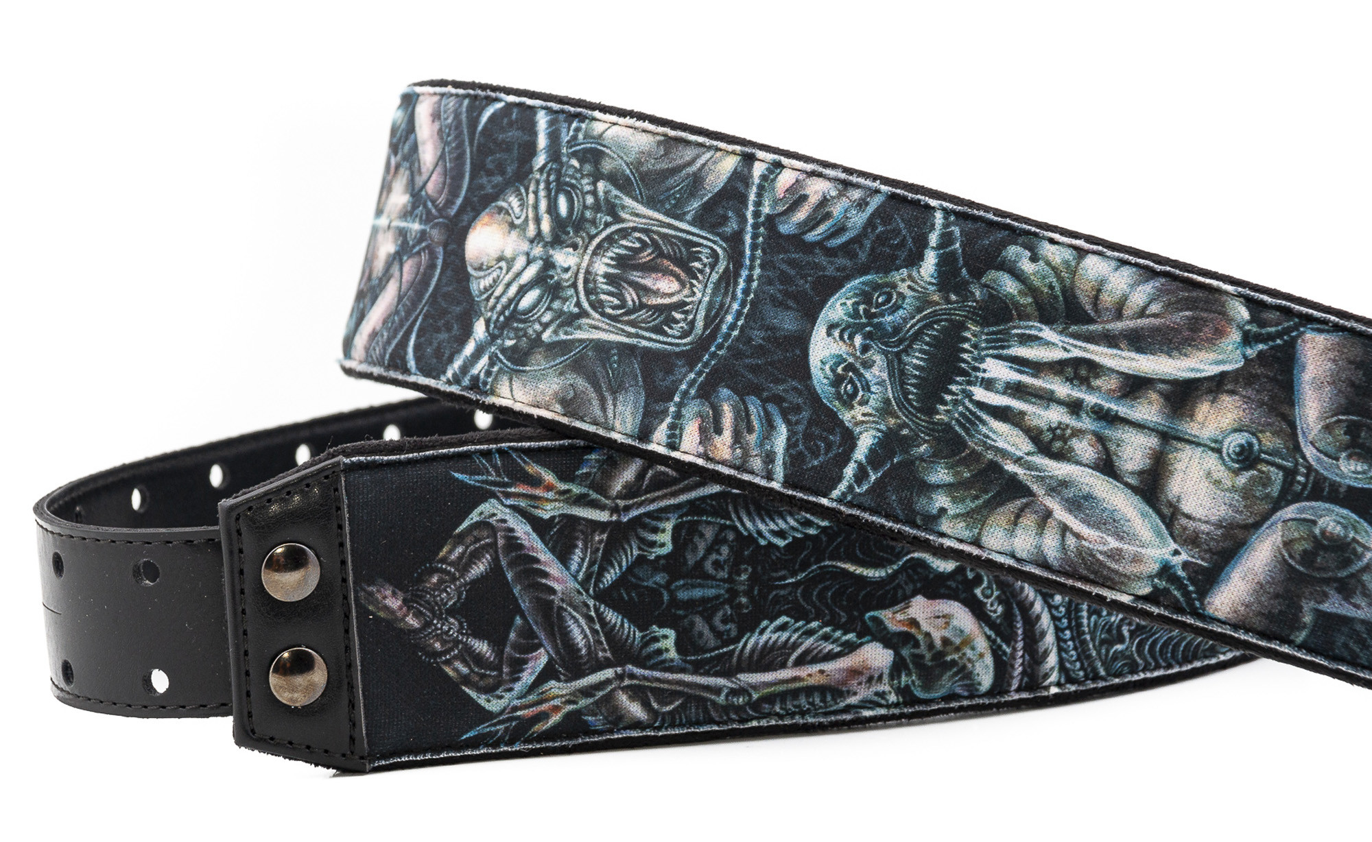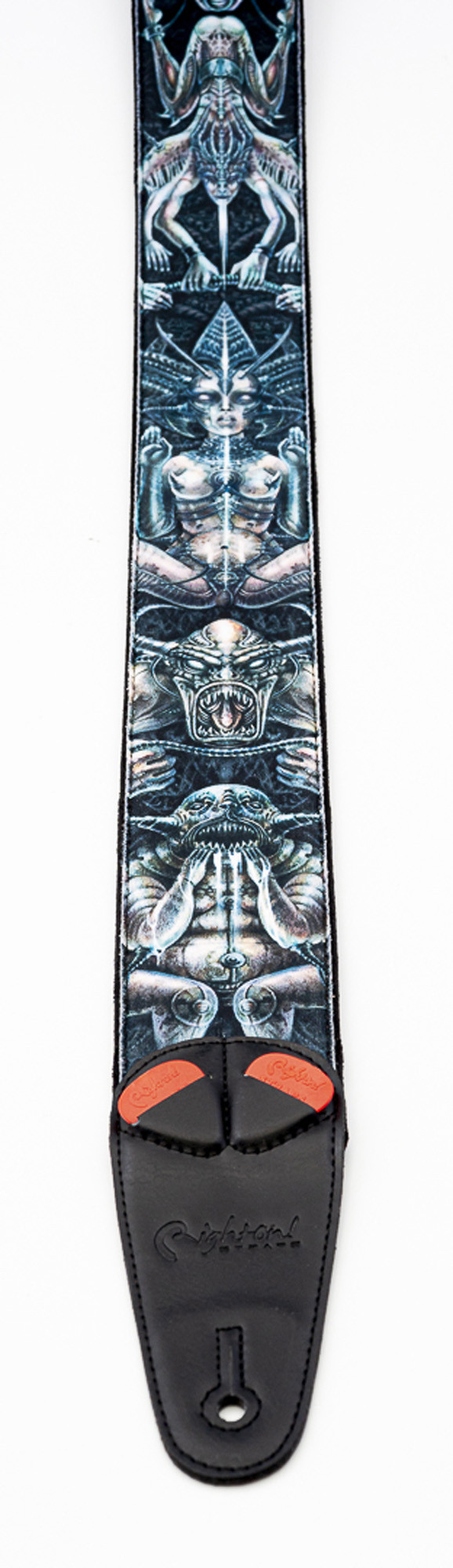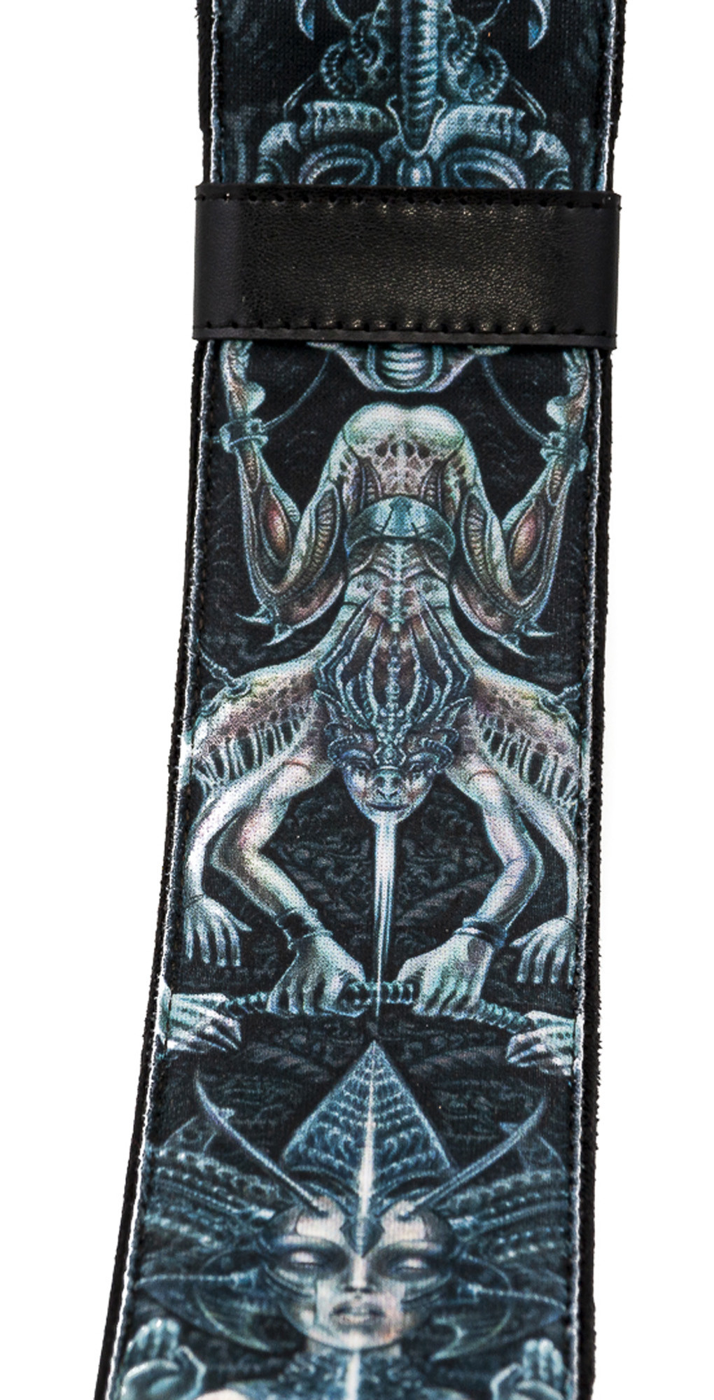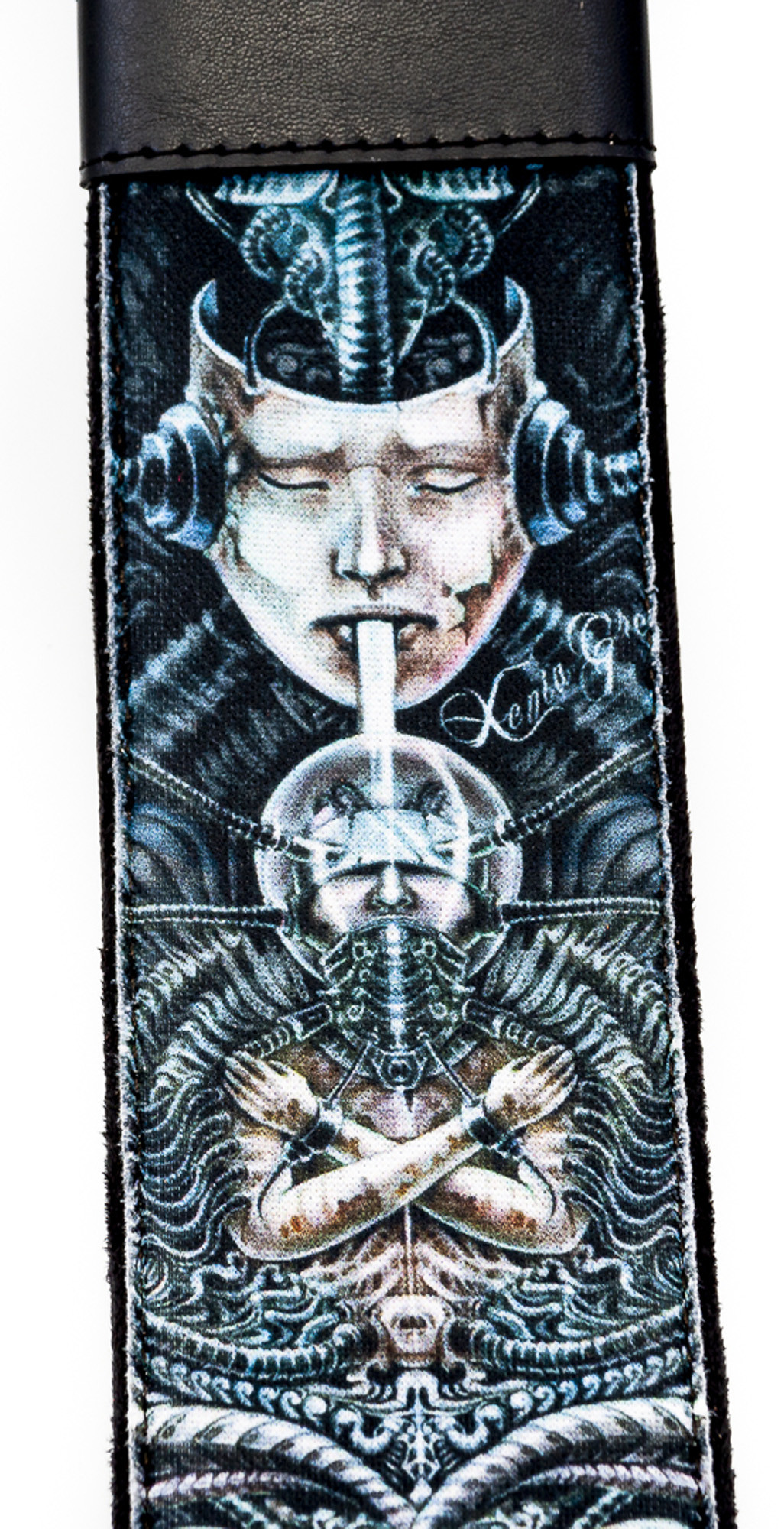 Correa modelo SEVEN con exterior de tejido, ancho de 6 cm y longitud ajustable de 100 a 145 cm. Integra un portapúas y presenta un motivo único « siete pecados ». Su diseño combina un forro de microfibras, extremos 100 % sintéticos y un acolchado de alta densidad.