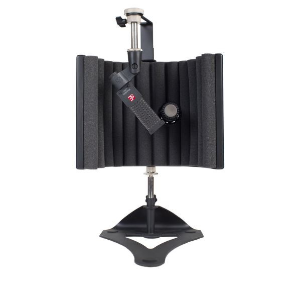 Porque combina en un solo accesorio las funciones de filtro anti-reflex, aislador y soporte doble para micrófono, con un diseño pensado para alinear perfectamente dos micros sobre amplificadores o batería.