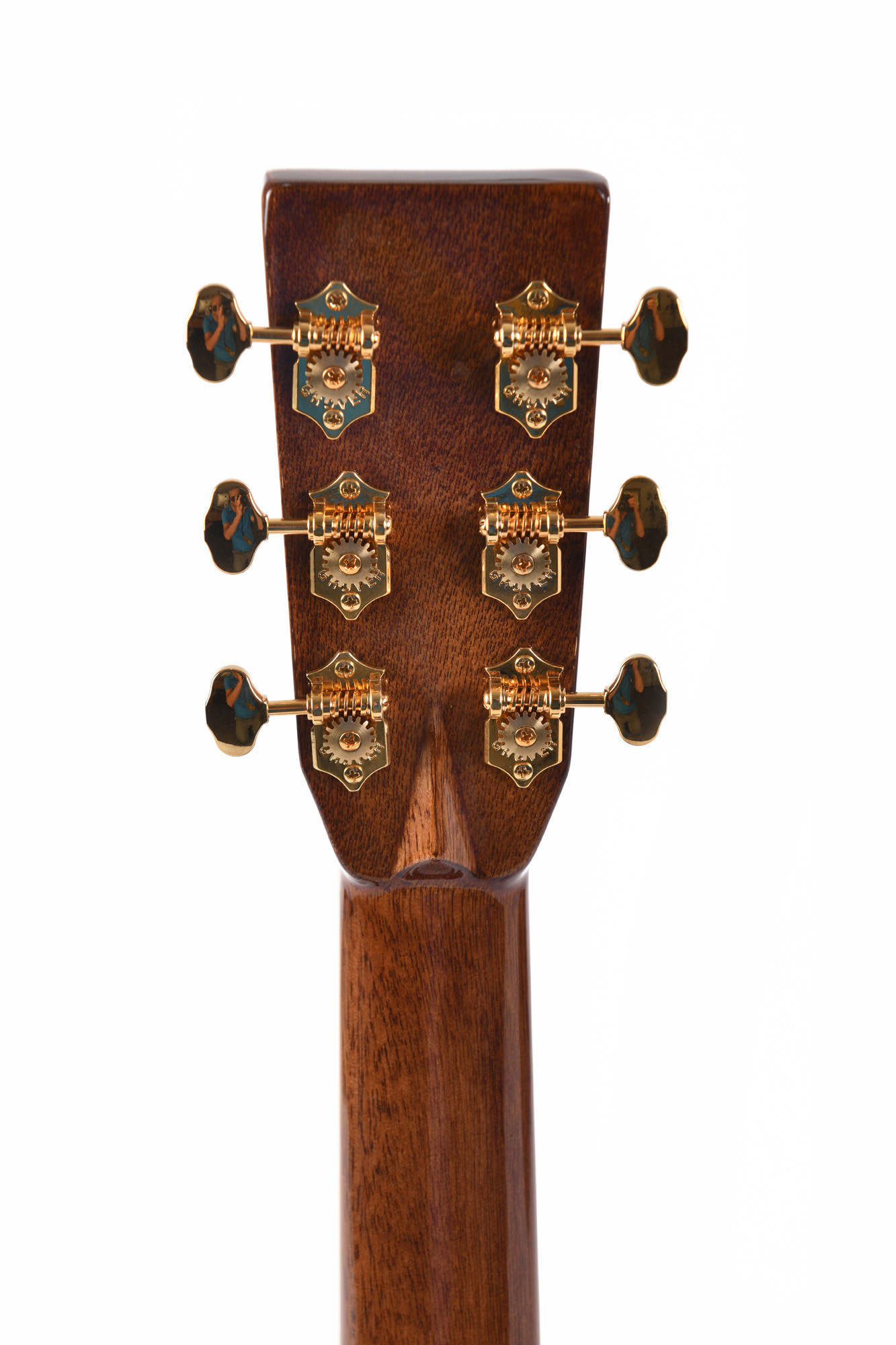Ofrece una tapa de abeto Sitka macizo, cejuela y silleta de hueso, un diapasón de micarta con incrustaciones de abulón, afinadores abiertos Grover dorados y un acabado natural brillante.