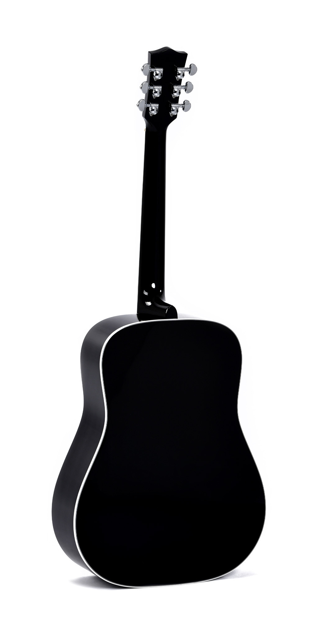 Este modelo DM-SG5-BK en formato Dreadnought combina una tapa de abeto Sitka macizo con fondo y aros de caoba para ofrecer una construcción sólida y equilibrada. Su mástil de caoba con incrustaciones, su diapasón de micarta con incrustaciones, sus cejuelas de hueso y su escala de 25,4" (645 mm) contribuyen a una cómoda experiencia de interpretación y a una buena precisión. También está equipado con clavijeros Grover cromados en baño de aceite y un sistema EQ Fishman Sonitone.