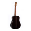 Este modelo Dreadnought se distingue por una tapa de abeto Sitka macizo, combinada con fondo y aros de tilia. Está equipado con un mástil de caoba, un diapasón de micarta con incrustaciones de abulón, así como un binding de abulón para un acabado cuidado. La escala de 25,4" (645 mm) y la anchura en la cejuela de 44,5 mm contribuyen a una sujeción cómoda. Los afinadores abiertos Grover dorados, las cejuelas de hueso y el acabado natural brillante completan el conjunto. El instrumento se entrega con un softcase SSC-D.