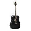 Esta versión especial en formato Dreadnought se distingue por su tapa de abeto Sitka macizo, combinada con fondo y aros de tilia. Su mástil de caoba, su diapasón de micarta con incrustaciones de abulón y sus cejuelas de hueso forman parte de un diseño cuidado, pensado para ofrecer una experiencia de interpretación fiable y agradable. El acabado negro brillante, el binding de abulón y las clavijas abiertas Grover doradas aportan un toque elegante al conjunto. El modelo se entrega con una funda blanda SSC-D.