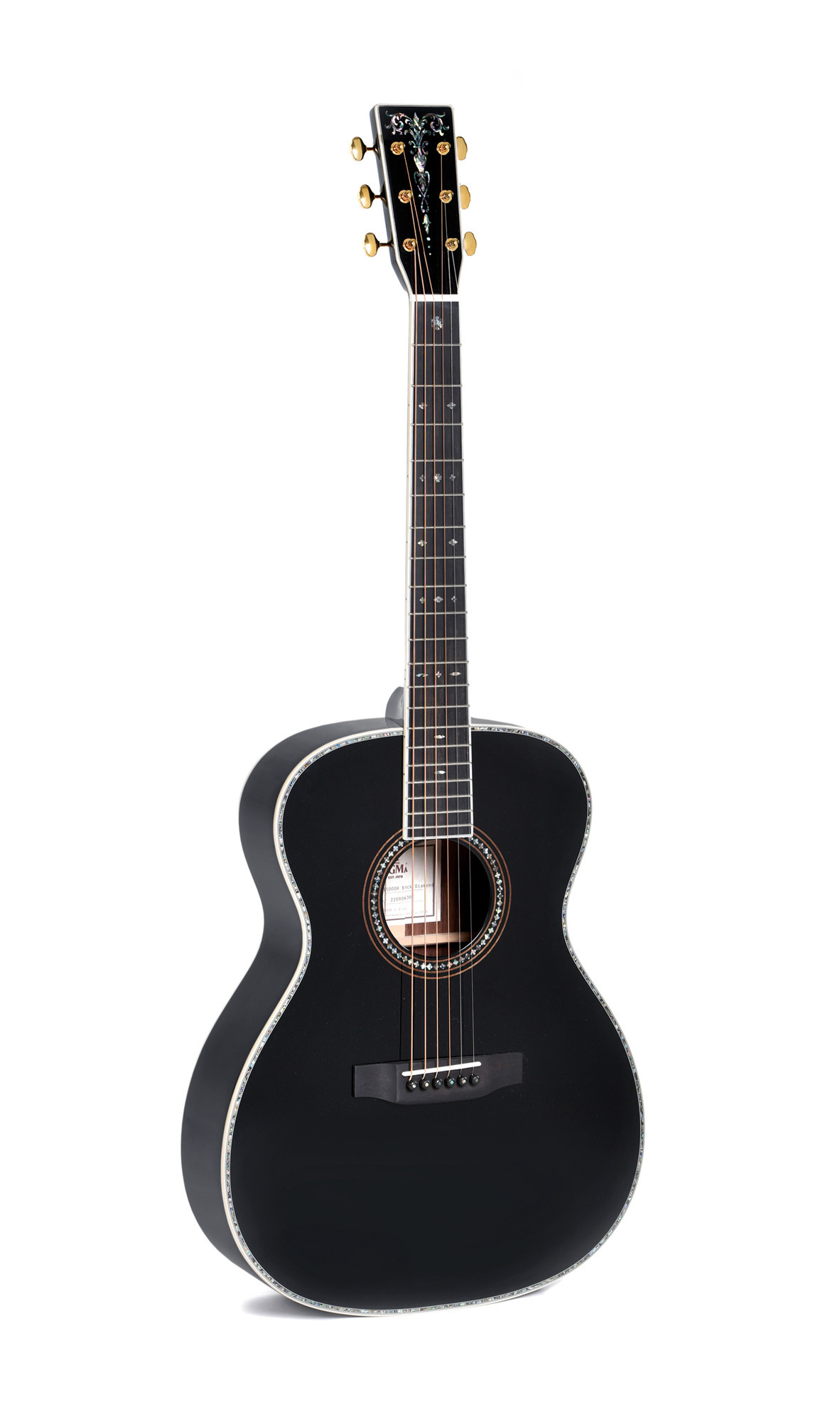 Se distingue por su tapa de abeto europeo macizo AA, su fondo y aros de palisandro indio macizo, su mástil de caoba, así como por sus cejuelas de hueso, su diapasón y su puente de ébano, y sus clavijeros Grover niquelados.