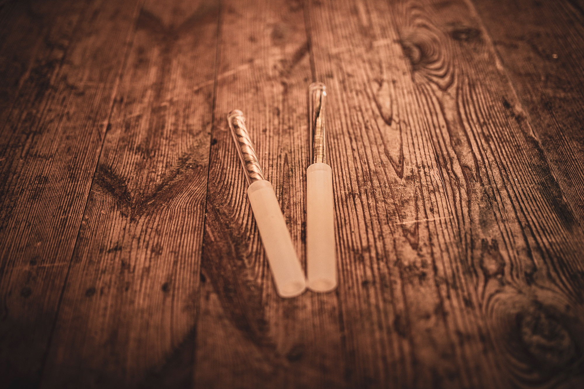 Fabricadas en vidrio y parcialmente recubiertas de silicona, son adecuadas tanto para golpear como para frotar suavemente los cuencos tibetanos de cristal. El revestimiento de silicona flexible permite obtener sonidos muy delicados, casi inaudibles, sin dejar de ser precisos. El mango de vidrio, por su parte, garantiza un agarre cómodo.