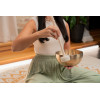 Se distingue por su fabricación artesanal en la India, su formato de 21 cm y su peso de 1000 g, así como por la presencia de una funda y un aro de fieltro incluidos.