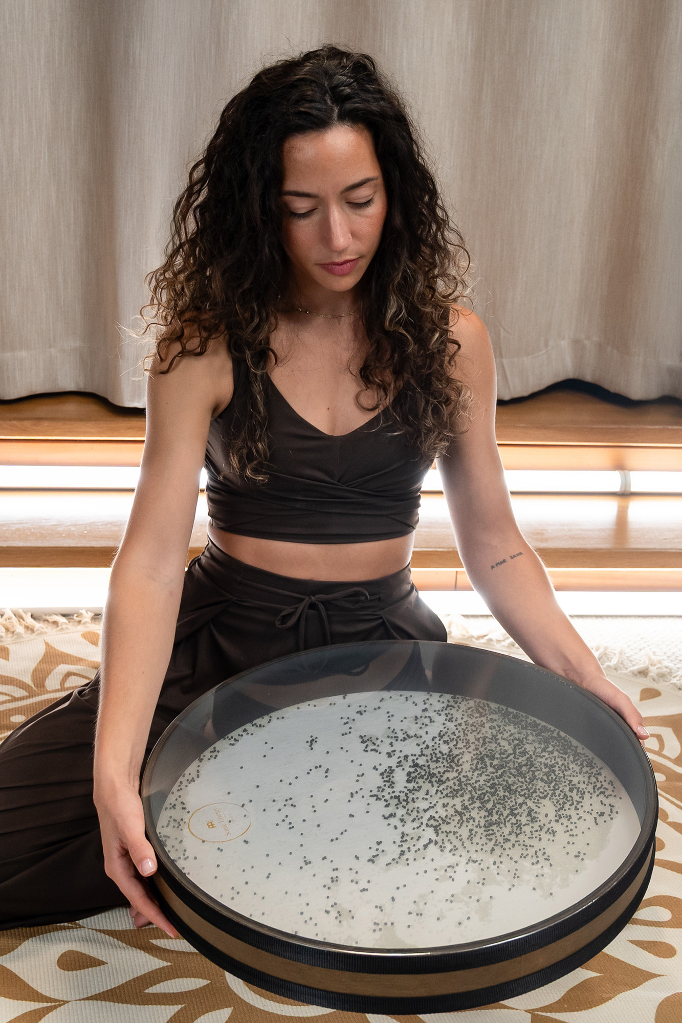 Diseñada para recrear el sonido relajante de las olas, esta percusión de 20" ofrece una profundidad de 2,5" y un resultado sonoro suave y envolvente. Su relleno de bolas de vidrio y de metal permite obtener un movimiento sonoro fluido, mientras que su fabricación en piel sintética, madera de Siam y materiales veganos la convierte en un instrumento adecuado para un uso respetuoso con estos criterios.