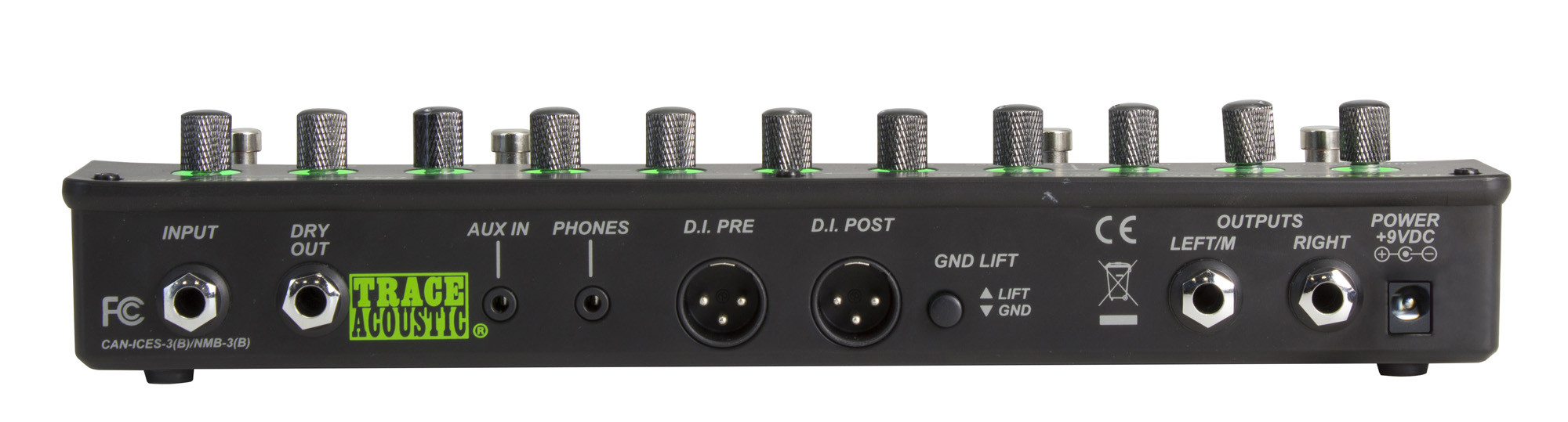 Pedalera de efectos y previo acústico con ecualización de 3 bandas, filtro Notch, reverb, delay, chorus, afinador integrado y retroiluminación. Su acabado negro y sus funciones completas lo convierten en una solución práctica tanto para el escenario como para el ensayo.