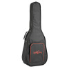 Está equipada con un mástil con refuerzo de fibra de vidrio, varetaje en X aligerado, diapasón y puente de palisandro, 20 trastes, una cejuela NuBone de 43 mm y clavijeros dorados de aceite. Se incluye una funda para facilitar el transporte y la protección del instrumento.