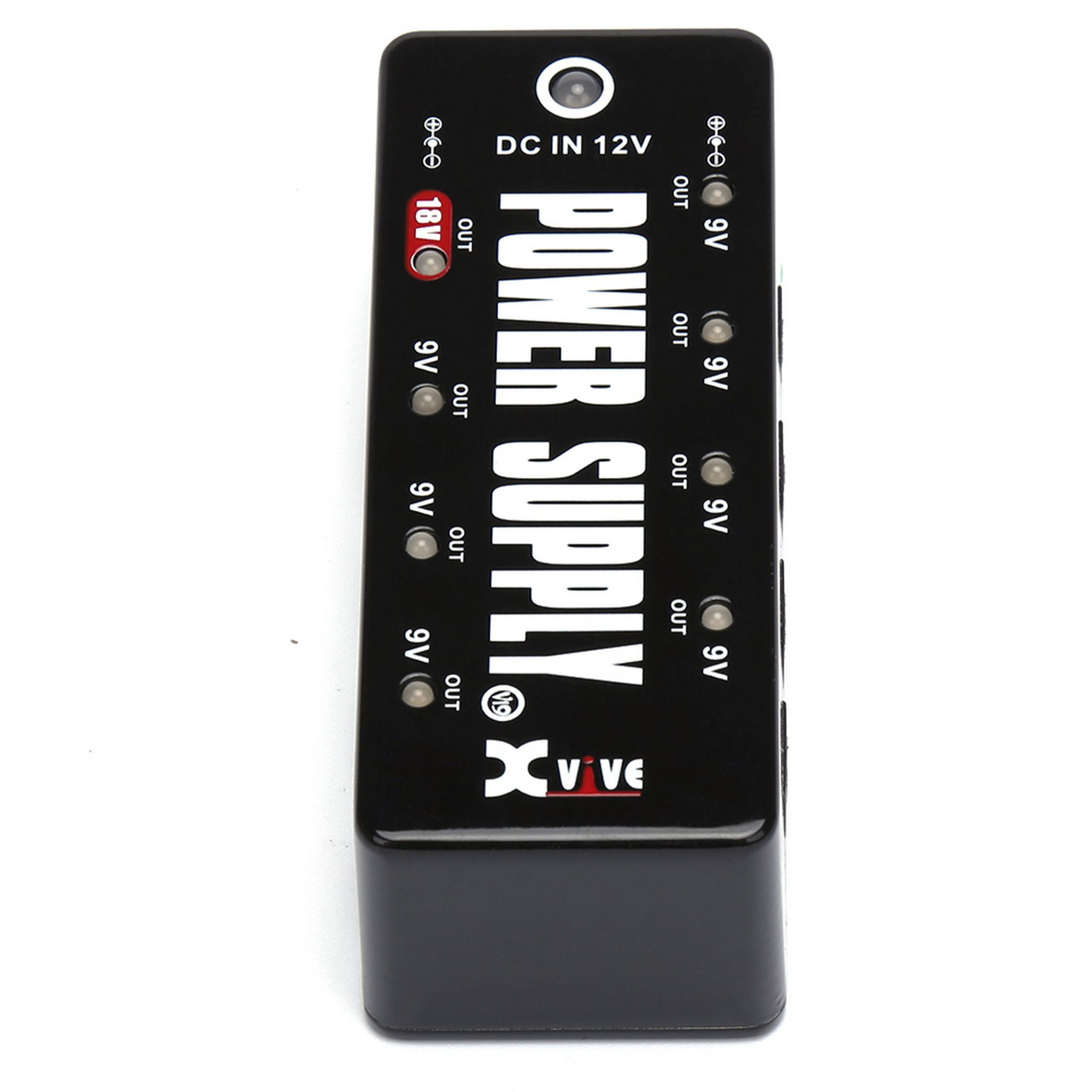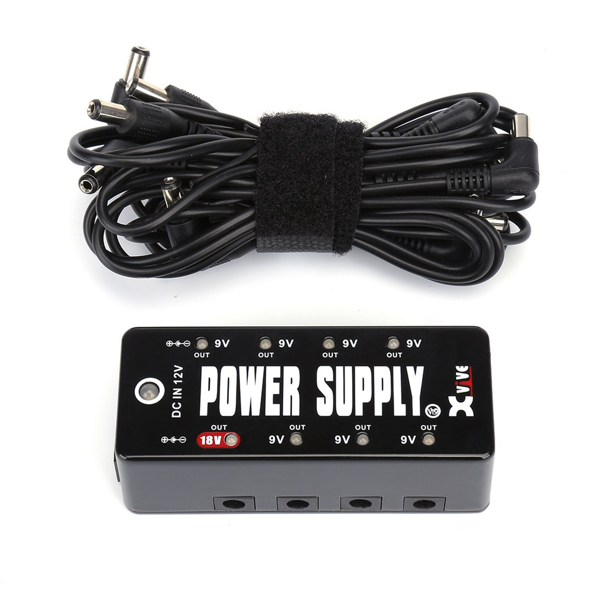 Ofrece 8 salidas independientes, de las cuales 7 son de 9 V hasta 300 mA y una de 18 V a 150 mA. Esta configuración permite una alimentación dedicada para varios pedales, con una compatibilidad práctica según las necesidades de su pedalboard.